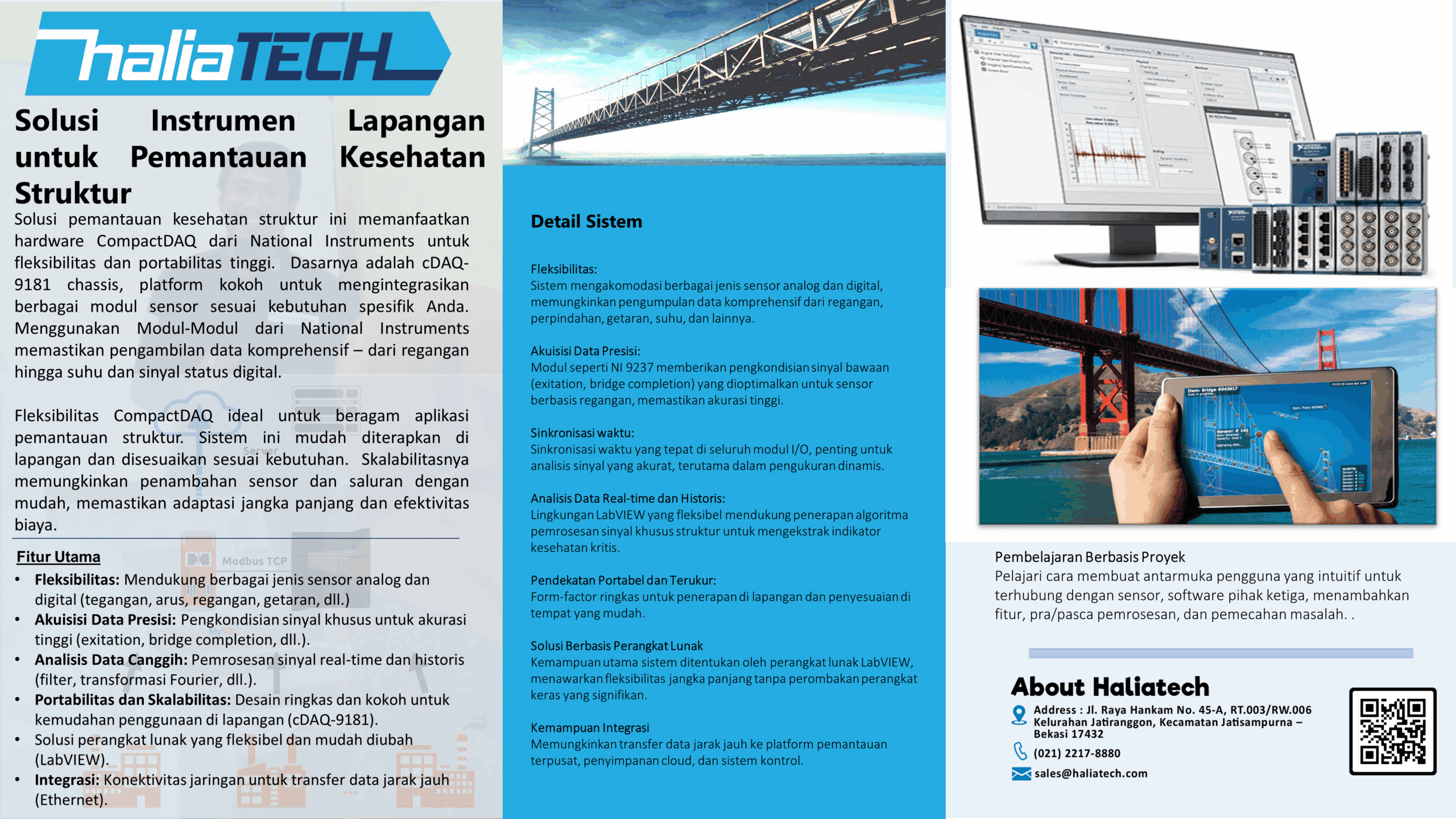 The flexibility of CompactDAQ is ideal for a wide range of structural monitoring applications. The system is easy to deploy in the field and customize as needed. Its scalability allows for easy addition of sensors and channels, ensuring long-term adaptability and cost-effectiveness.