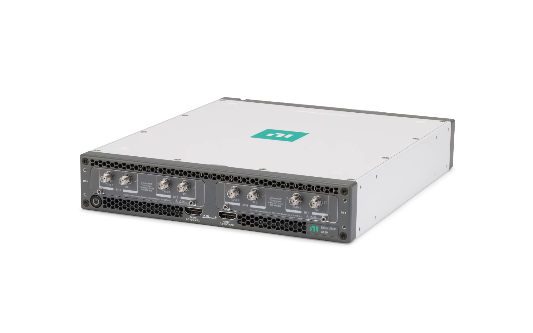 USRP X410 integrates hardware and software to help you prototype high-performance wireless systems and perform over-the-air signal generation and analysis. Additionally, the Ettus USRP X410 features a two-stage superheterodyne architecture with four independent transmitter and receiver channels. It also features a AMD Zynq Ultrascale+ RFSoC with programmable FPGA supporting the Open Source UHD tool flow as well as LabVIEW FPGA. With these features, the Ettus USRP X410 has the RF and processing performance for applications such as wireless communications prototyping, spectrum monitoring, and signals intelligence. The Ettus USRP X410 is equipped with a GPS-disciplined 10 MHz oven-controlled crystal oscillator (OCXO) Reference Clock, which improves frequency accuracy and synchronization.